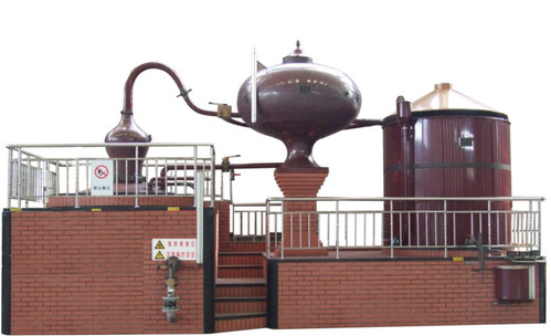 該設(shè)備是歐洲生產(chǎn)高檔白蘭地(水果發(fā)酵蒸餾酒)和威士忌(糧食發(fā)酵蒸餾酒)的必備蒸餾器。在白蘭地和麥芽威士忌的生產(chǎn)過程中,至今依然使用傳統(tǒng)的壺型蒸餾器進行蒸餾。幾個世紀(jì)以來,其基本結(jié)構(gòu)幾乎沒有改變,主要由蒸餾器、鵝頸分流器、預(yù)熱器、冷凝器組成。依然保留著銅制的傳統(tǒng)材質(zhì)、結(jié)構(gòu)和形狀。